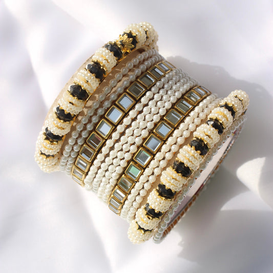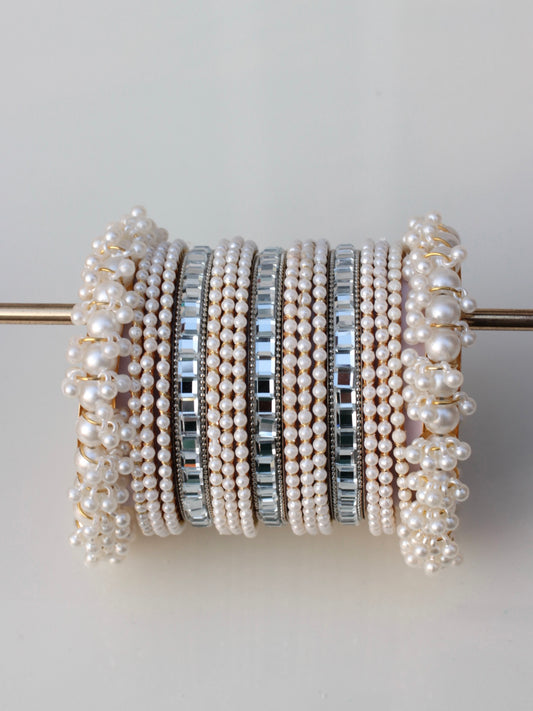 Pearl Luxe Bangle Set-4-Silver
