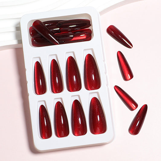 Long Red Cat-eye Nails-1885- Free 24 pc Sticker Sheet included