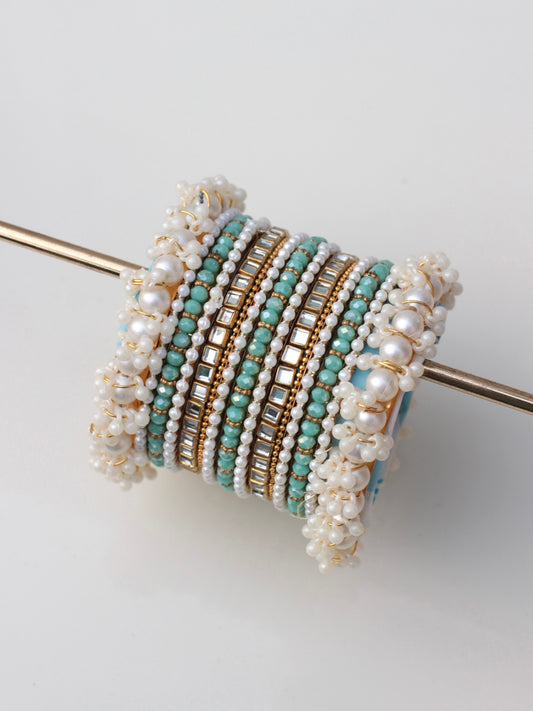 Noor-e-Moti Bangle Set-7-Dark Cyan