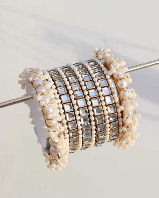 Noorané Bangle Set -Silver + Gold