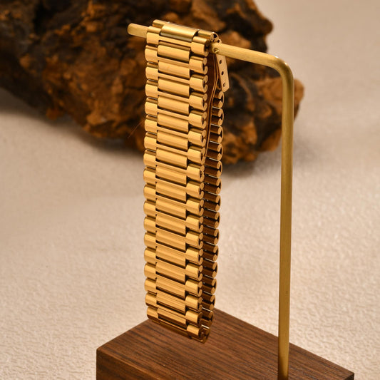 JBracelet Broad watch chain bracelet(Stainless Steel) 24K Gold plated Anti Tarnish Everyday wear Bracelet- 316