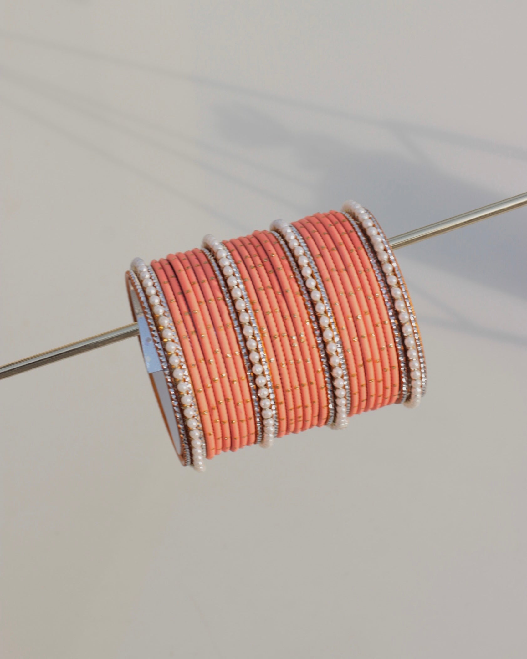 Each piece is crafted with premium materials and delicate artistry, ensuring a comfortable fit and a radiant shinethat complements your festive look. Elevate your style with bangles that embody tradition, elegance, and celebration.