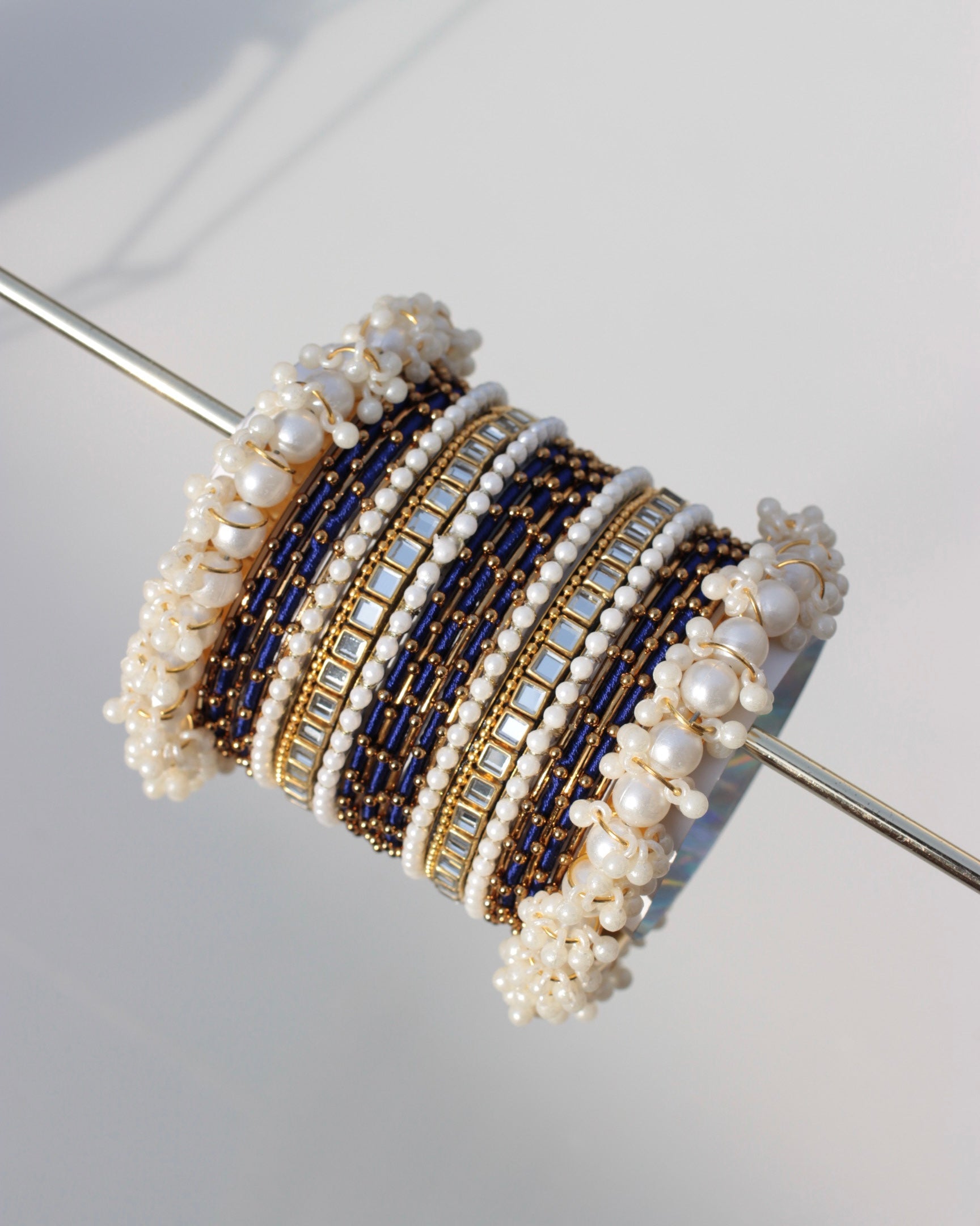 This Eid, adorn your hands with grace and tradition with our exquisite collection of handcrafted bangles. Designed for the festive season, our bangles blend luxury and heritage, featuring velvet textures, lustrous pearls, and intricate Kundan embellishments. Whether you're dressing up for family gatherings or grand celebrations, these bangles add the perfect finishing touch to your Eid ensemble.