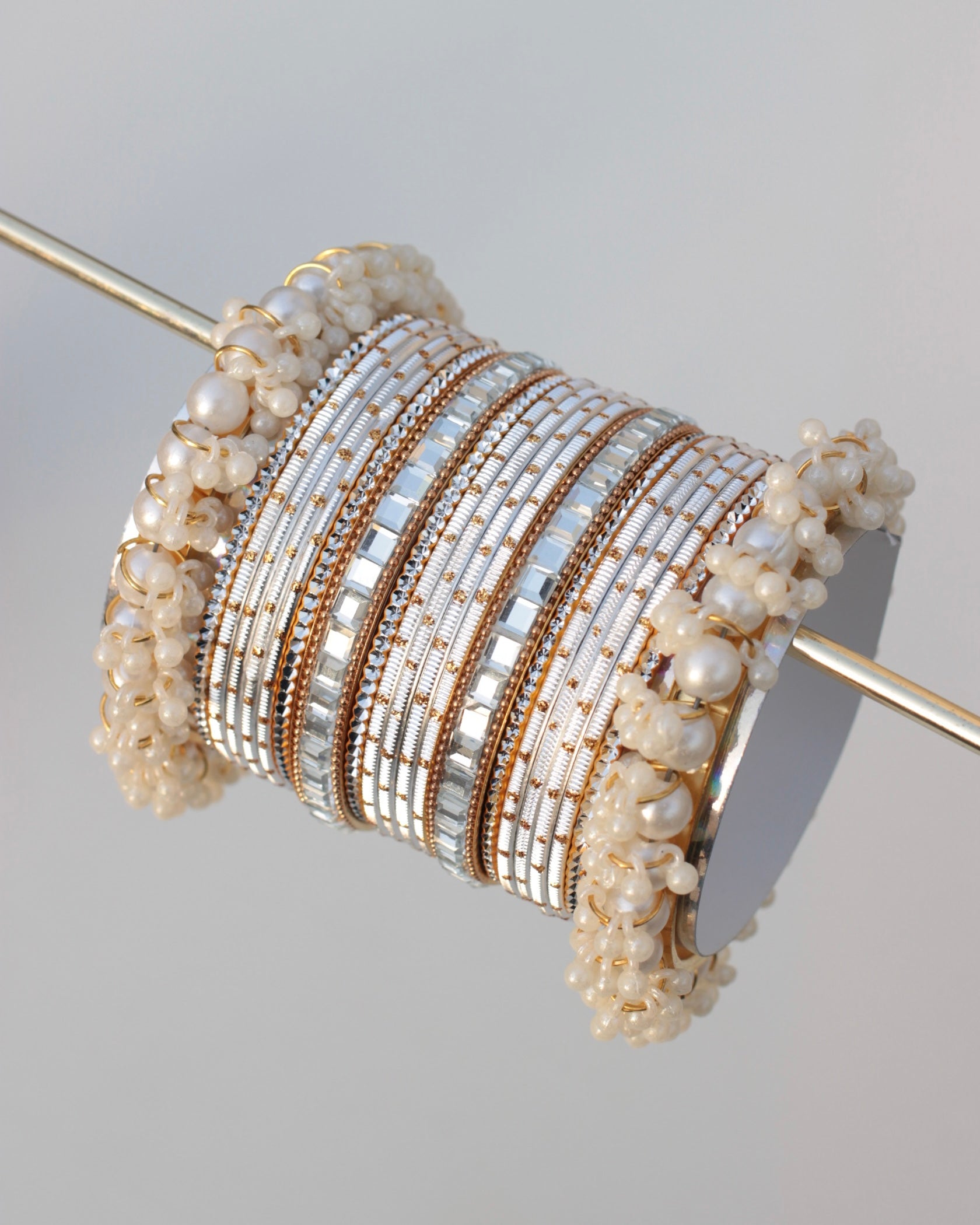 Each piece is crafted with premium materials and delicate artistry, ensuring a comfortable fit and a radiant shinethat complements your festive look. Elevate your style with bangles that embody tradition, elegance, and celebration.
