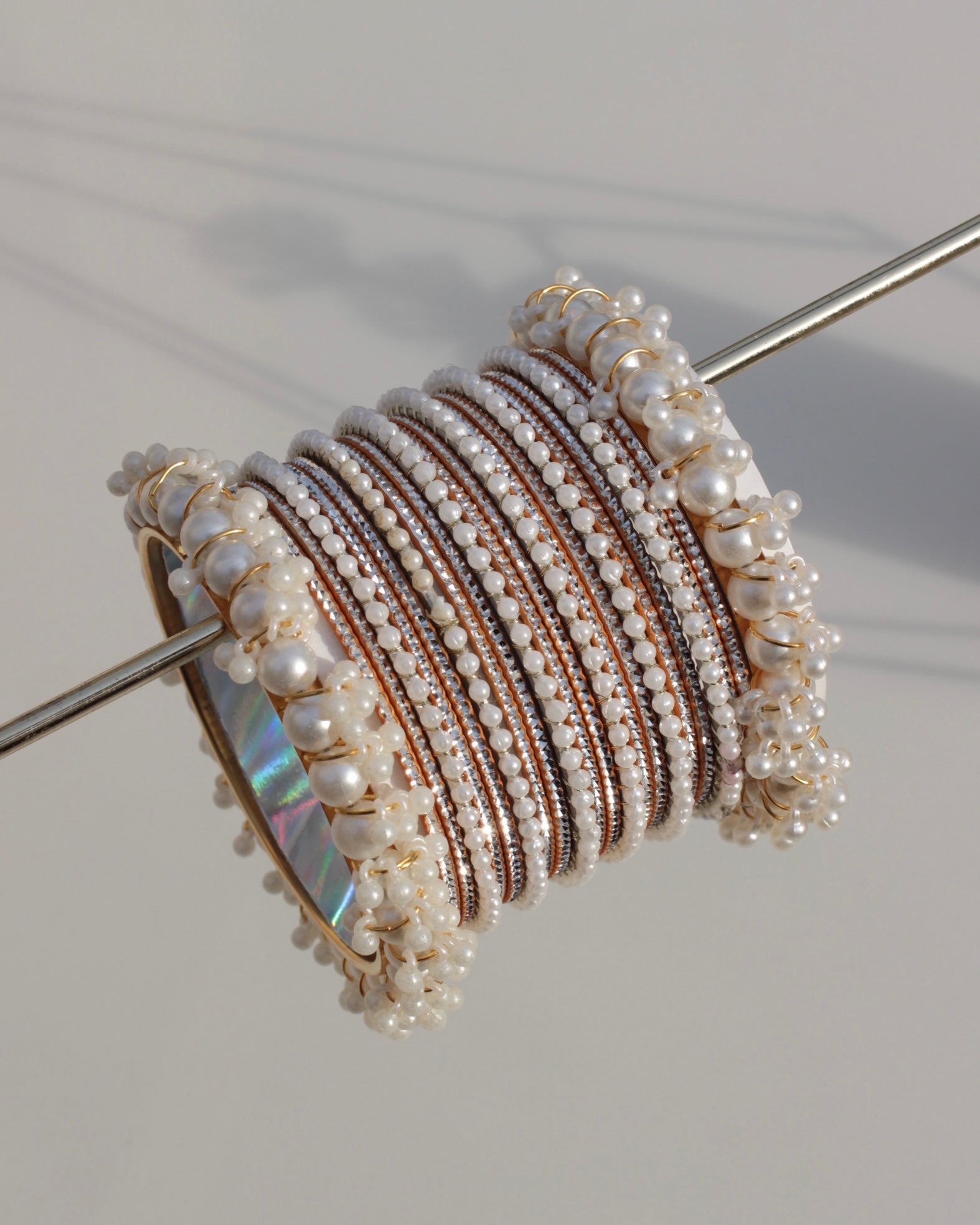 Each piece is crafted with premium materials and delicate artistry, ensuring a comfortable fit and a radiant shinethat complements your festive look. Elevate your style with bangles that embody tradition, elegance, and celebration.