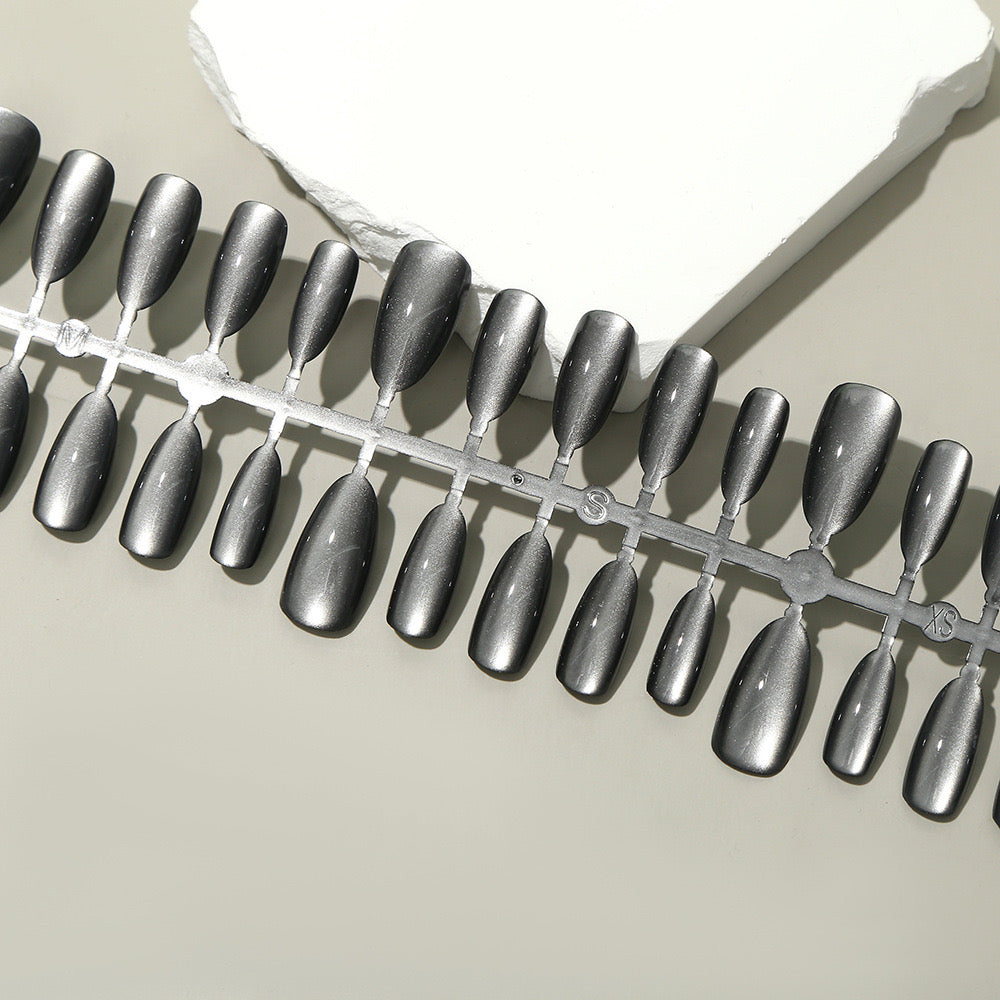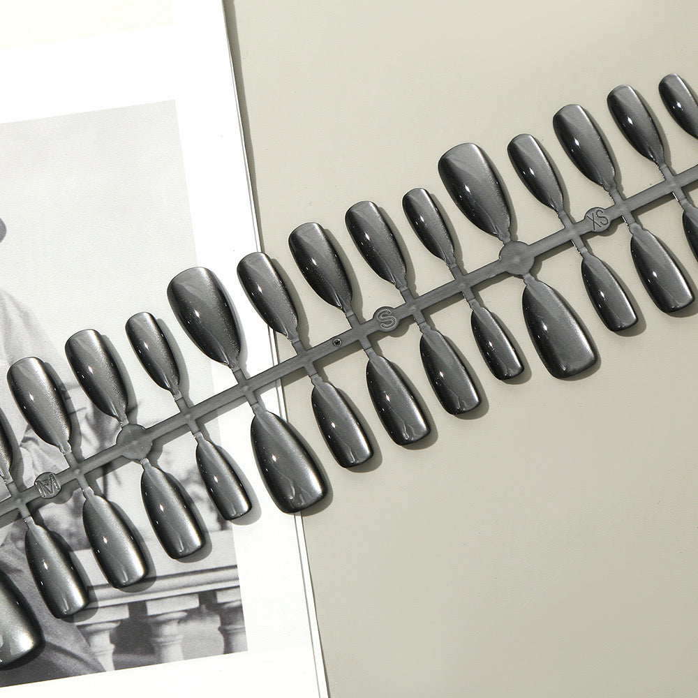 Cat-eye reflective Black/grey Nails-Almond nails- 86-Free 4-pc Nail-kit included