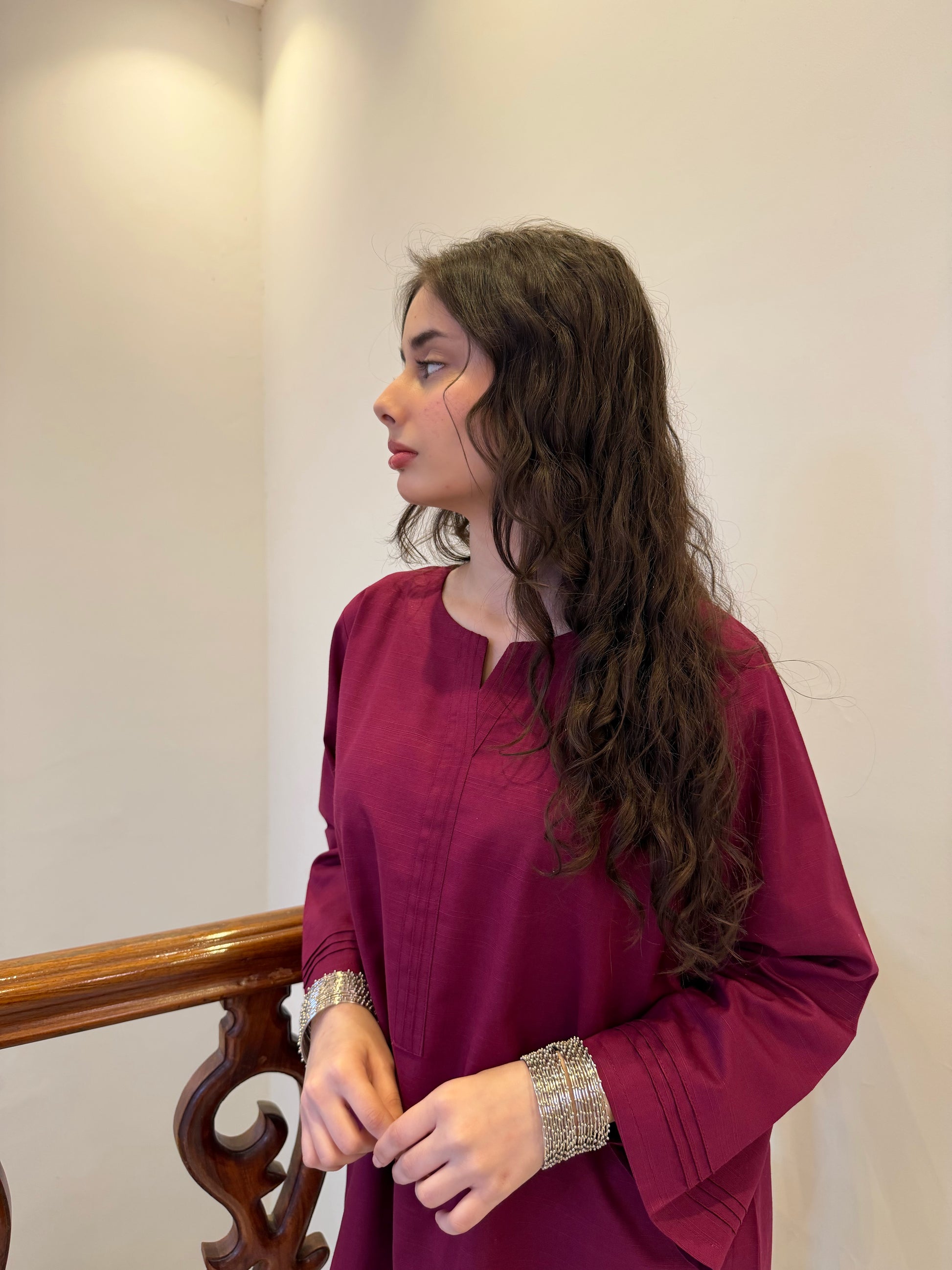 Plum Classic Farshi Set - 2 pc Stitched